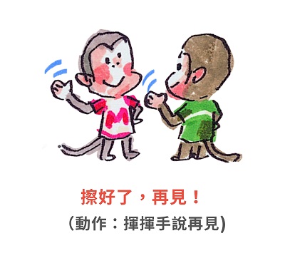 擦好了,再見!(動作:揮揮手說再見)