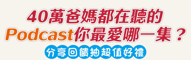 現在,我們特別舉辦「節目回顧與許願活動」,邀請您一起回顧最受歡迎的集數,也誠摯邀請您分享收聽心得,或提供未來想聽的主題,或希望邀請的來賓。我們期待讓節目更貼近您育兒的需要。